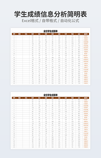 【特殊限制】设计师仅对作品中独创性部分享有著作权,对作品中含有的国旗、国徽等政治图案不享有权利,仅作为作品整体效果的示例展示,禁止商用。 相关关键词: 简细 学生 成绩 信息