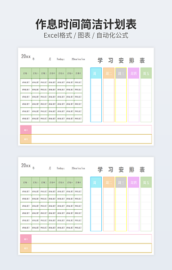 【特殊限制】设计师仅对作品中独创性部分享有著作权,对作品中含有的国旗、国徽等政治图案不享有权利,仅作为作品整体效果的示例展示,禁止商用。 相关关键词: 简洁 每周 作息 学习 学习计划 计划表