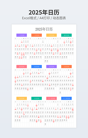 本作品内容为彩色背景2025年日历下载,大小为344.41KB,作品为高清大图模板,格式为xlsx, 属于日历模板,作品模板源文件下载后可用编辑替换,模板中如有人物画像仅供参考禁止商用。小Q办公网-提供简历,PPT,Word,Excel优质模板素材下载模版平台,拥有海量的工作总结、竞聘求职、年终颁奖、计划书等。 通过小Q办公网下载日历模板源文件编辑修改源文件文字和图片即可使用。