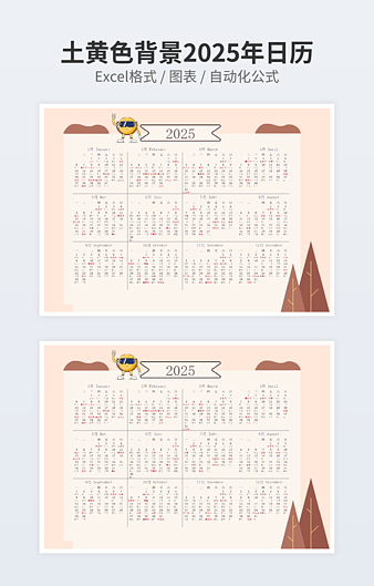 上一篇:土黄色背景2025年日历下一篇:暖色背景2025年日历为您推荐