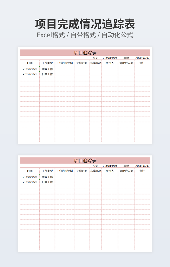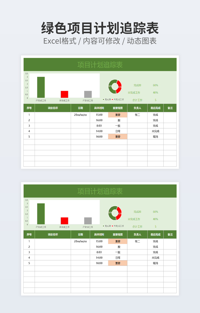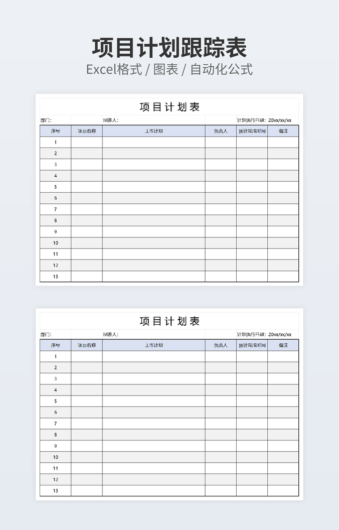 本作品内容为某公司项目计划追踪表下载,大小为7.84KB,作品为高清大图模板,格式为xlsx, 属于项目跟踪表模板,作品模板源文件下载后可用编辑替换,模板中如有人物画像仅供参考禁止商用。小Q办公网-提供简历,PPT,Word,Excel优质模板素材下载模版平台,拥有海量的工作总结、竞聘求职、年终颁奖、计划书等。 通过小Q办公网下载项目跟踪表模板源文件编辑修改源文件文字和图片即可使用。