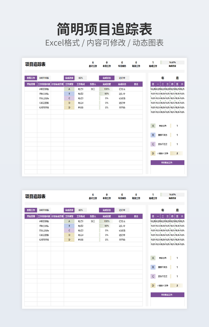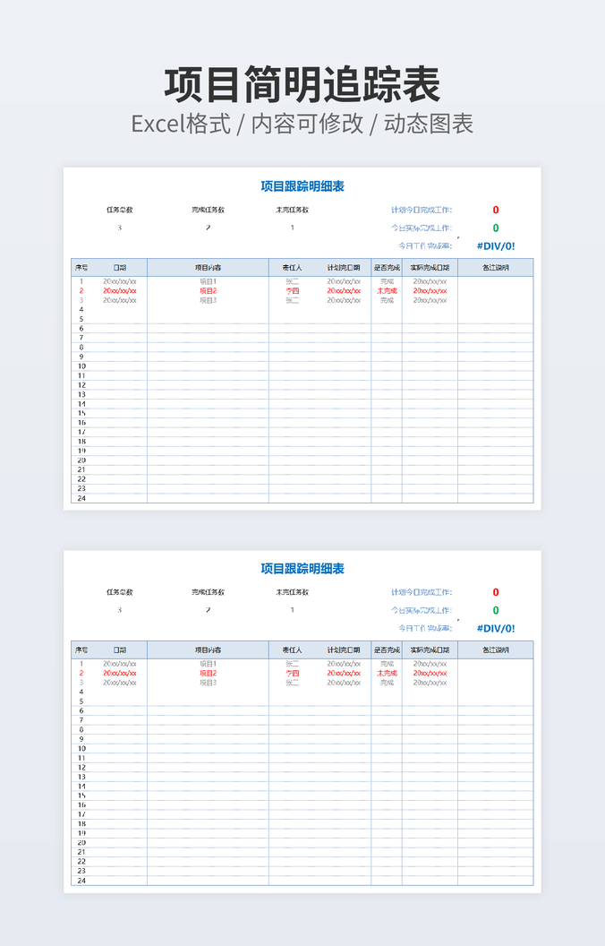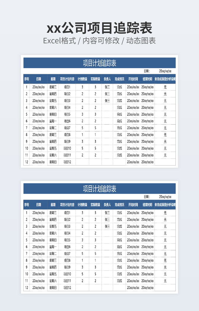 上一篇:精简项目进度追踪表下一篇:青色项目工作计划跟踪表为您推荐
