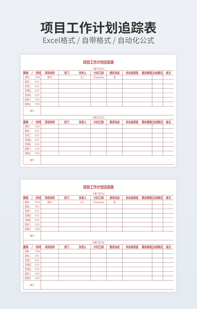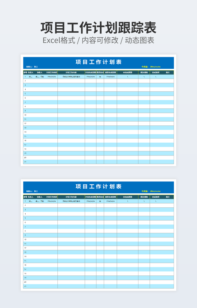 【特殊限制】设计师仅对作品中独创性部分享有著作权,对作品中含有的国旗、国徽等政治图案不享有权利,仅作为作品整体效果的示例展示,禁止商用。 相关关键词: 项目 追踪 计划表