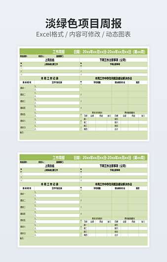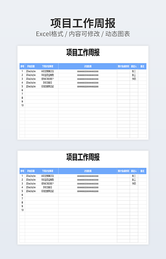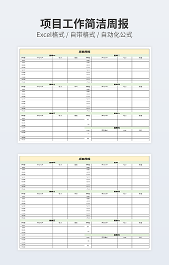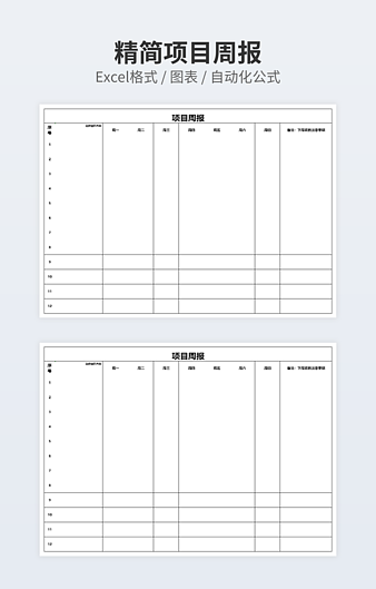 本作品内容为项目工作总结周报下载,大小为7.74KB,作品为高清大图模板,格式为xlsx, 属于项目周报模板,作品模板源文件下载后可用编辑替换,模板中如有人物画像仅供参考禁止商用。小Q办公网-提供简历,PPT,Word,Excel优质模板素材下载模版平台,拥有海量的工作总结、竞聘求职、年终颁奖、计划书等。 通过小Q办公网下载项目周报模板源文件编辑修改源文件文字和图片即可使用。