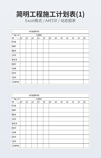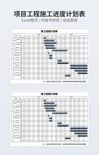 【特殊限制】设计师仅对作品中独创性部分享有著作权,对作品中含有的国旗、国徽等政治图案不享有权利,仅作为作品整体效果的示例展示,禁止商用。 相关关键词: 简洁 项目 工程施工 计划表