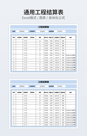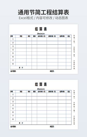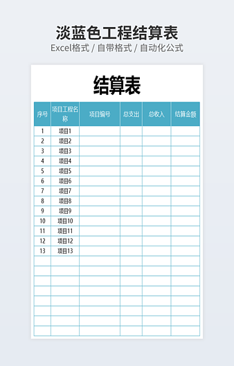 简洁淡蓝色工程结算表