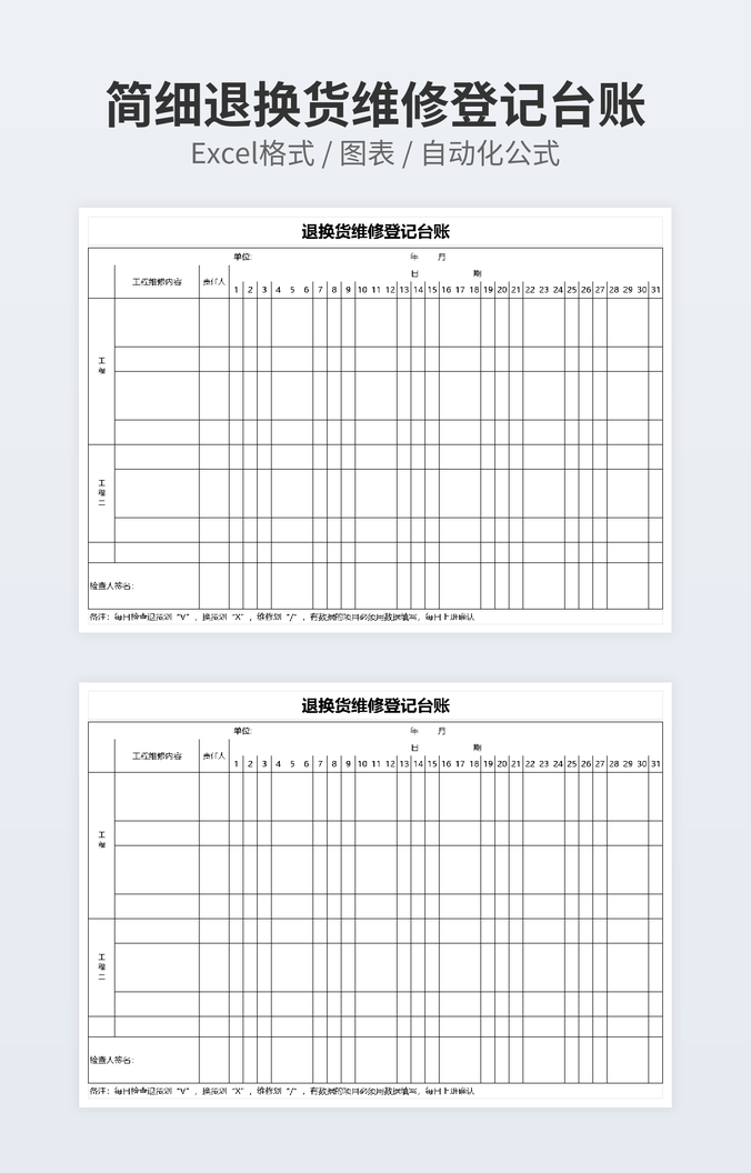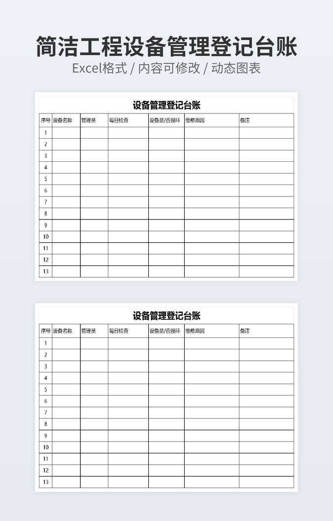 【特殊限制】设计师仅对作品中独创性部分享有著作权,对作品中含有的国旗、国徽等政治图案不享有权利,仅作为作品整体效果的示例展示,禁止商用。 相关关键词: 设备 每日 检查 管理 登记 台账
