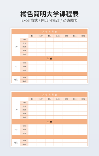 本作品内容为精细橘色小学课程表下载,大小为10.44KB,作品为高清大图模板,格式为xlsx, 属于课程表模板,作品模板源文件下载后可用编辑替换,模板中如有人物画像仅供参考禁止商用。小Q办公网-提供简历,PPT,Word,Excel优质模板素材下载模版平台,拥有海量的工作总结、竞聘求职、年终颁奖、计划书等。 通过小Q办公网下载课程表模板源文件编辑修改源文件文字和图片即可使用。