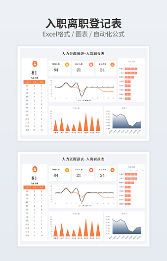 【特殊限制】设计师仅对作品中独创性部分享有著作权,对作品中含有的国旗、国徽等政治图案不享有权利,仅作为作品整体效果的示例展示,禁止商用。 相关关键词: 各部门 入职 离职 人员 统计分析 超优秀