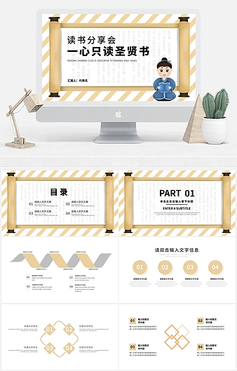 【特殊限制】设计师仅对作品中独创性部分享有著作权,对作品中含有的国旗、国徽等政治图案不享有权利,仅作为作品整体效果的示例展示,禁止商用。 相关关键词: 读书 交流 卡通 可爱 教育 主题 汇报 知识 分享