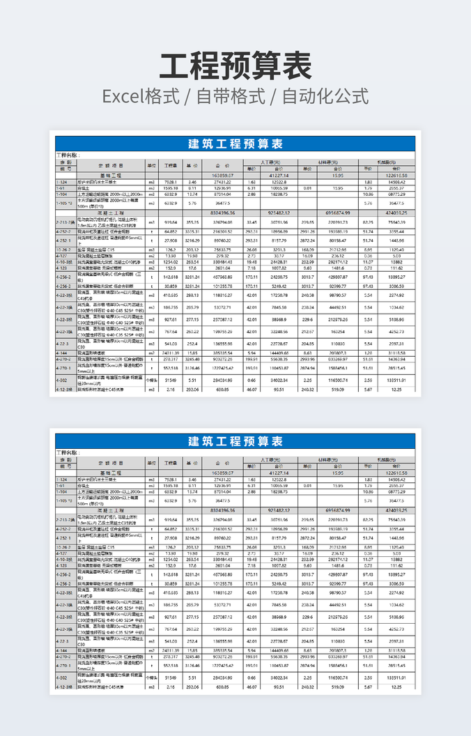 【特殊限制】设计师仅对作品中独创性部分享有著作权,对作品中含有的国旗、国徽等政治图案不享有权利,仅作为作品整体效果的示例展示,禁止商用。 相关关键词: 工程施工 预算 excel 模板 超优秀