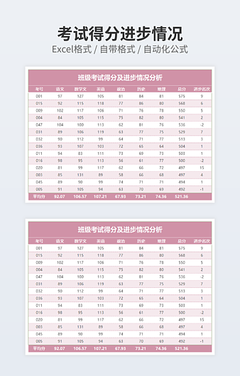 本作品内容为班级考试得分及进步情况分析下载,大小为25.32KB,作品为高清大图模板,格式为xlsx, 属于成绩表模板,作品模板源文件下载后可用编辑替换,模板中如有人物画像仅供参考禁止商用。小Q办公网-提供简历,PPT,Word,Excel优质模板素材下载模版平台,拥有海量的工作总结、竞聘求职、年终颁奖、计划书等。 通过小Q办公网下载成绩表模板源文件编辑修改源文件文字和图片即可使用。