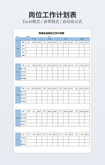 本作品内容为工作计划excel模板下载,大小为21.82KB,作品为高清大图模板,格式为xlsx, 属于工作计划表模板,作品模板源文件下载后可用编辑替换,模板中如有人物画像仅供参考禁止商用。小Q办公网-提供简历,PPT,Word,Excel优质模板素材下载模版平台,拥有海量的工作总结、竞聘求职、年终颁奖、计划书等。 通过小Q办公网下载工作计划表模板源文件编辑修改源文件文字和图片即可使用。