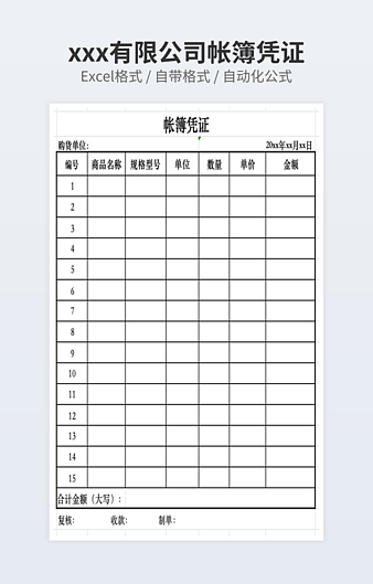 本作品内容为会计凭证下载,大小为15.36KB,作品为高清大图模板,格式为xlsx, 属于其他模板,作品模板源文件下载后可用编辑替换,模板中如有人物画像仅供参考禁止商用。小Q办公网-提供简历,PPT,Word,Excel优质模板素材下载模版平台,拥有海量的工作总结、竞聘求职、年终颁奖、计划书等。 通过小Q办公网下载其他模板源文件编辑修改源文件文字和图片即可使用。