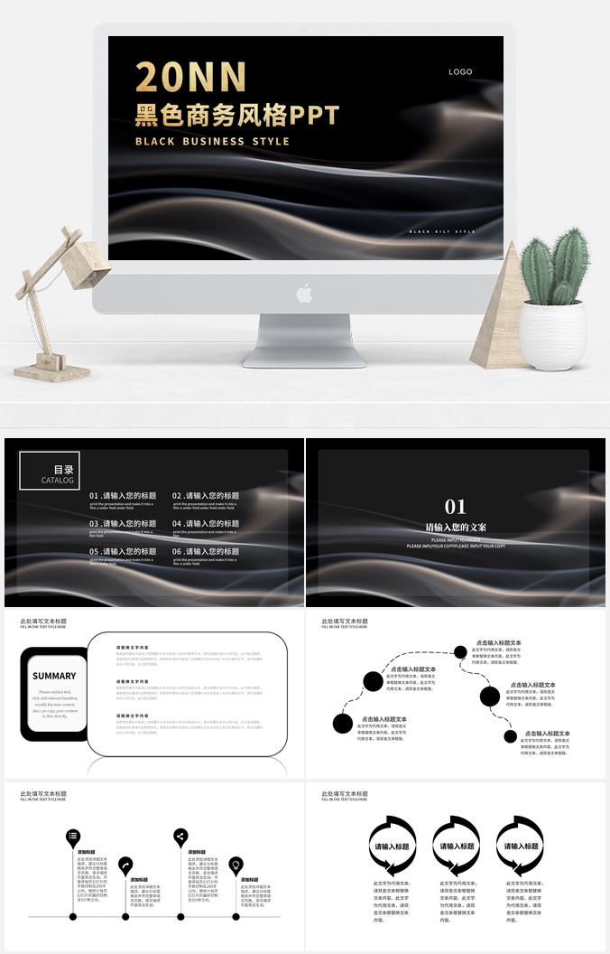 黑白鎏金企业宣传PPT模板