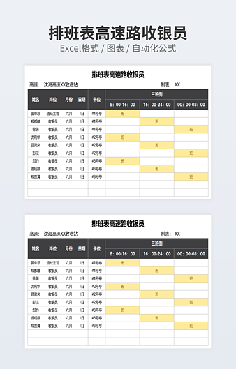 本作品内容为周末节假日值班表下载,大小为52.85KB,作品为高清大图模板,格式为xlsx, 属于排班表模板,作品模板源文件下载后可用编辑替换,模板中如有人物画像仅供参考禁止商用。小Q办公网-提供简历,PPT,Word,Excel优质模板素材下载模版平台,拥有海量的工作总结、竞聘求职、年终颁奖、计划书等。 通过小Q办公网下载排班表模板源文件编辑修改源文件文字和图片即可使用。