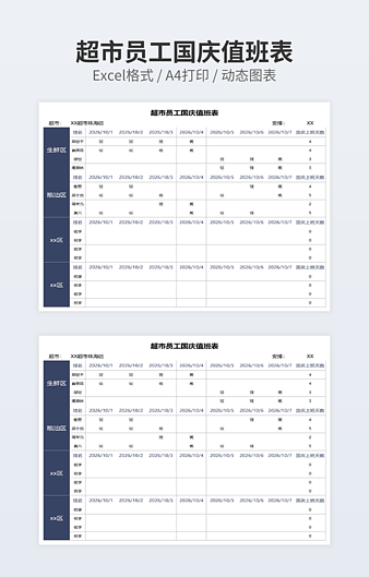 本作品内容为国庆值班安排表下载,大小为13.07KB,作品为高清大图模板,格式为xlsx, 属于排班表模板,作品模板源文件下载后可用编辑替换,模板中如有人物画像仅供参考禁止商用。小Q办公网-提供简历,PPT,Word,Excel优质模板素材下载模版平台,拥有海量的工作总结、竞聘求职、年终颁奖、计划书等。 通过小Q办公网下载排班表模板源文件编辑修改源文件文字和图片即可使用。