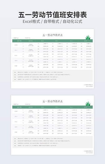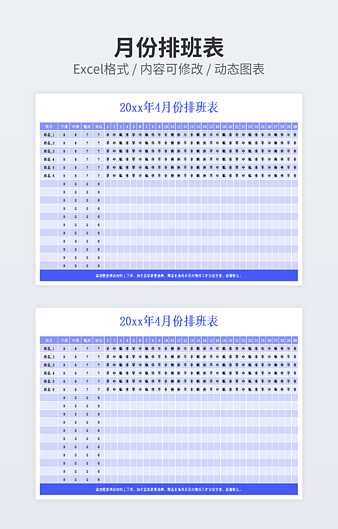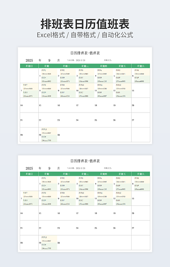 【特殊限制】设计师仅对作品中独创性部分享有著作权,对作品中含有的国旗、国徽等政治图案不享有权利,仅作为作品整体效果的示例展示,禁止商用。 相关关键词: 排班 月度 自动
