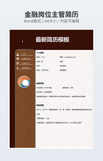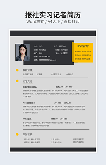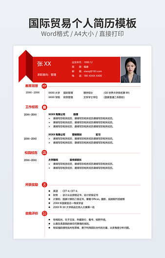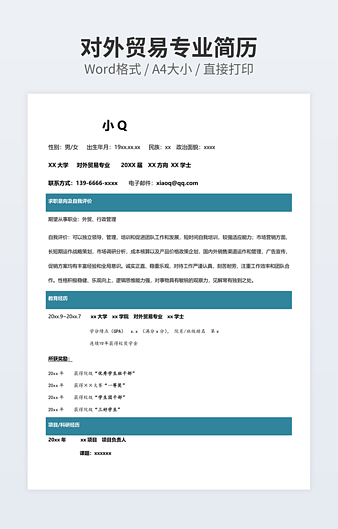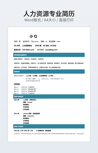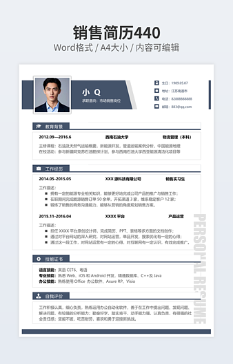本作品内容为个人应聘简历模板下载下载,大小为156.62KB,作品为高清大图模板,格式为docx, 属于其他模板,作品模板源文件下载后可用编辑替换,模板中如有人物画像仅供参考禁止商用。小Q办公网-提供简历,PPT,Word,Excel优质模板素材下载模版平台,拥有海量的工作总结、竞聘求职、年终颁奖、计划书等。 通过小Q办公网下载其他模板源文件编辑修改源文件文字和图片即可使用。