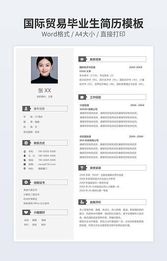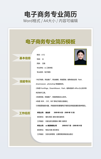本作品内容为摄影师的简历下载,大小为69.52KB,作品为高清大图模板,格式为docx, 属于其他模板,作品模板源文件下载后可用编辑替换,模板中如有人物画像仅供参考禁止商用。小Q办公网-提供简历,PPT,Word,Excel优质模板素材下载模版平台,拥有海量的工作总结、竞聘求职、年终颁奖、计划书等。 通过小Q办公网下载其他模板源文件编辑修改源文件文字和图片即可使用。