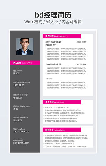 本作品内容为金融专业学生简历下载,大小为70.38KB,作品为高清大图模板,格式为docx, 属于其他模板,作品模板源文件下载后可用编辑替换,模板中如有人物画像仅供参考禁止商用。小Q办公网-提供简历,PPT,Word,Excel优质模板素材下载模版平台,拥有海量的工作总结、竞聘求职、年终颁奖、计划书等。 通过小Q办公网下载其他模板源文件编辑修改源文件文字和图片即可使用。