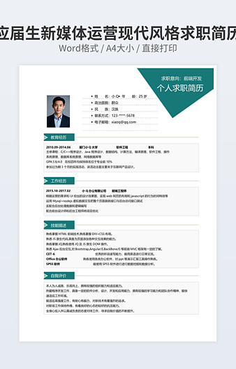 本作品内容为金融求职 简历下载,大小为54.59KB,作品为高清大图模板,格式为docx, 属于其他模板,作品模板源文件下载后可用编辑替换,模板中如有人物画像仅供参考禁止商用。小Q办公网-提供简历,PPT,Word,Excel优质模板素材下载模版平台,拥有海量的工作总结、竞聘求职、年终颁奖、计划书等。 通过小Q办公网下载其他模板源文件编辑修改源文件文字和图片即可使用。