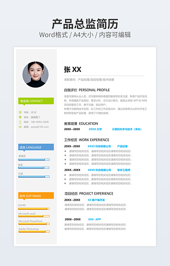 本作品内容为商务简历模板下载下载,大小为41.08KB,作品为高清大图模板,格式为docx, 属于产品运营模板,作品模板源文件下载后可用编辑替换,模板中如有人物画像仅供参考禁止商用。小Q办公网-提供简历,PPT,Word,Excel优质模板素材下载模版平台,拥有海量的工作总结、竞聘求职、年终颁奖、计划书等。 通过小Q办公网下载产品运营模板源文件编辑修改源文件文字和图片即可使用。