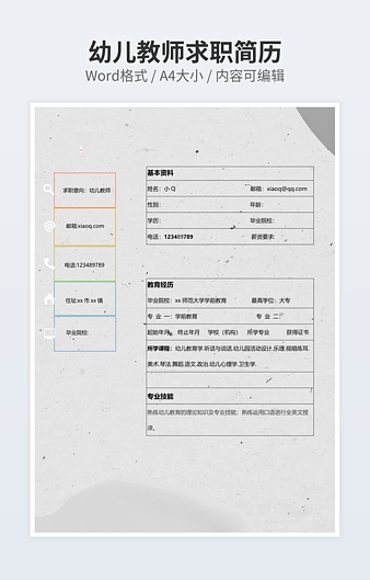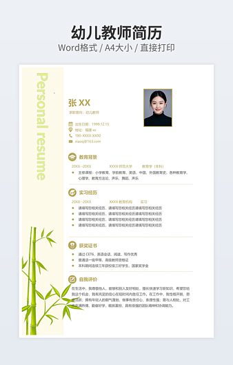 上一篇:代课老师的工作简历下一篇:幼儿教师简历为您推荐