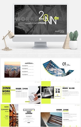 【特殊限制】设计师仅对作品中独创性部分享有著作权,对作品中含有的国旗、国徽等政治图案不享有权利,仅作为作品整体效果的示例展示,禁止商用。 相关关键词: 绿色 简约 工作总结 PPT 模板
