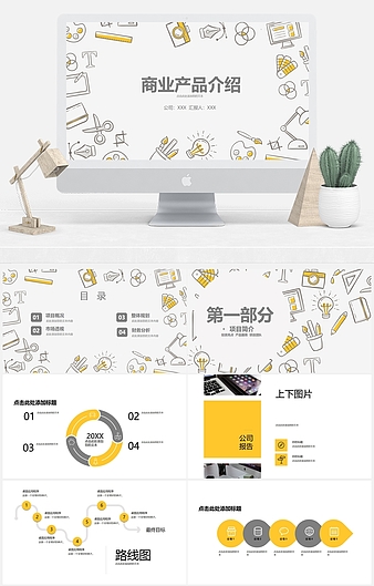 【特殊限制】设计师仅对作品中独创性部分享有著作权,对作品中含有的国旗、国徽等政治图案不享有权利,仅作为作品整体效果的示例展示,禁止商用。 相关关键词: 清新 新风 产品 介绍 PPT 模板