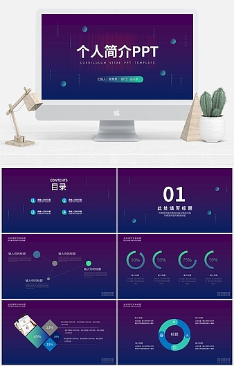 【特殊限制】设计师仅对作品中独创性部分享有著作权,对作品中含有的国旗、国徽等政治图案不享有权利,仅作为作品整体效果的示例展示,禁止商用。 相关关键词: 紫色 简约 自我介绍 简历 PPT 模板