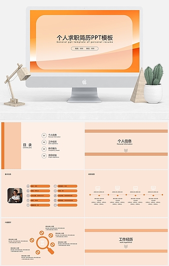 【特殊限制】设计师仅对作品中独创性部分享有著作权,对作品中含有的国旗、国徽等政治图案不享有权利,仅作为作品整体效果的示例展示,禁止商用。 相关关键词: 橙色 商务 个人简历 PPT 模板