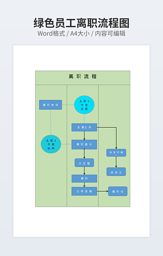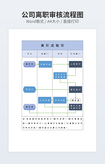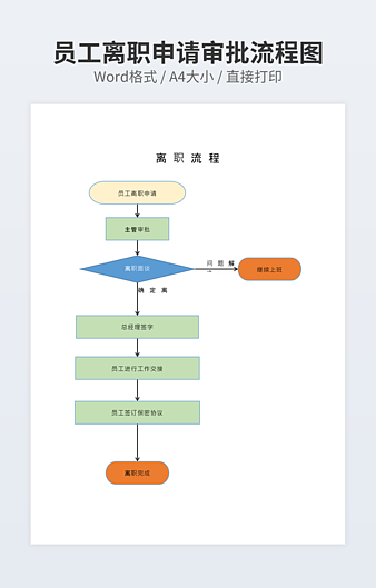 【特殊限制】设计师仅对作品中独创性部分享有著作权,对作品中含有的国旗、国徽等政治图案不享有权利,仅作为作品整体效果的示例展示,禁止商用。 相关关键词: 会计 离职 流程图