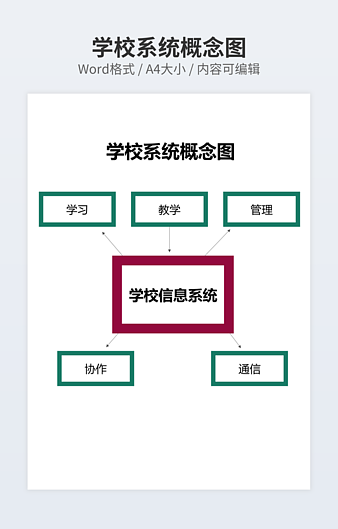 本作品内容为学校信息系统概念图下载,大小为23.7KB,作品为高清大图模板,格式为docx, 属于概念图模板,作品模板源文件下载后可用编辑替换,模板中如有人物画像仅供参考禁止商用。小Q办公网-提供简历,PPT,Word,Excel优质模板素材下载模版平台,拥有海量的工作总结、竞聘求职、年终颁奖、计划书等。 通过小Q办公网下载概念图模板源文件编辑修改源文件文字和图片即可使用。