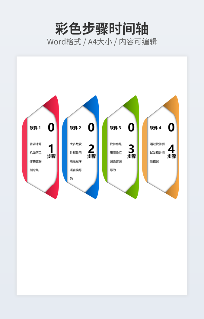 本作品内容为多彩旗帜时间轴模板下载,大小为38KB,作品为高清大图模板,格式为docx, 属于时间轴模板,作品模板源文件下载后可用编辑替换,模板中如有人物画像仅供参考禁止商用。小Q办公网-提供简历,PPT,Word,Excel优质模板素材下载模版平台,拥有海量的工作总结、竞聘求职、年终颁奖、计划书等。 通过小Q办公网下载时间轴模板源文件编辑修改源文件文字和图片即可使用。