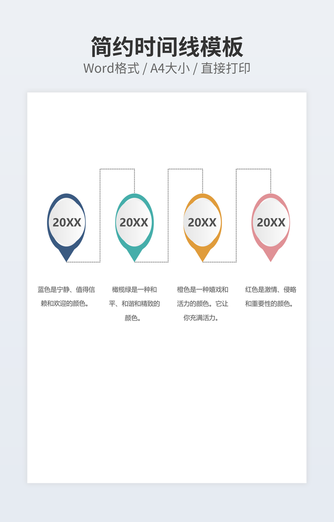 本作品内容为彩色时间轴个性模板下载,大小为34.66KB,作品为高清大图模板,格式为docx, 属于时间轴模板,作品模板源文件下载后可用编辑替换,模板中如有人物画像仅供参考禁止商用。小Q办公网-提供简历,PPT,Word,Excel优质模板素材下载模版平台,拥有海量的工作总结、竞聘求职、年终颁奖、计划书等。 通过小Q办公网下载时间轴模板源文件编辑修改源文件文字和图片即可使用。