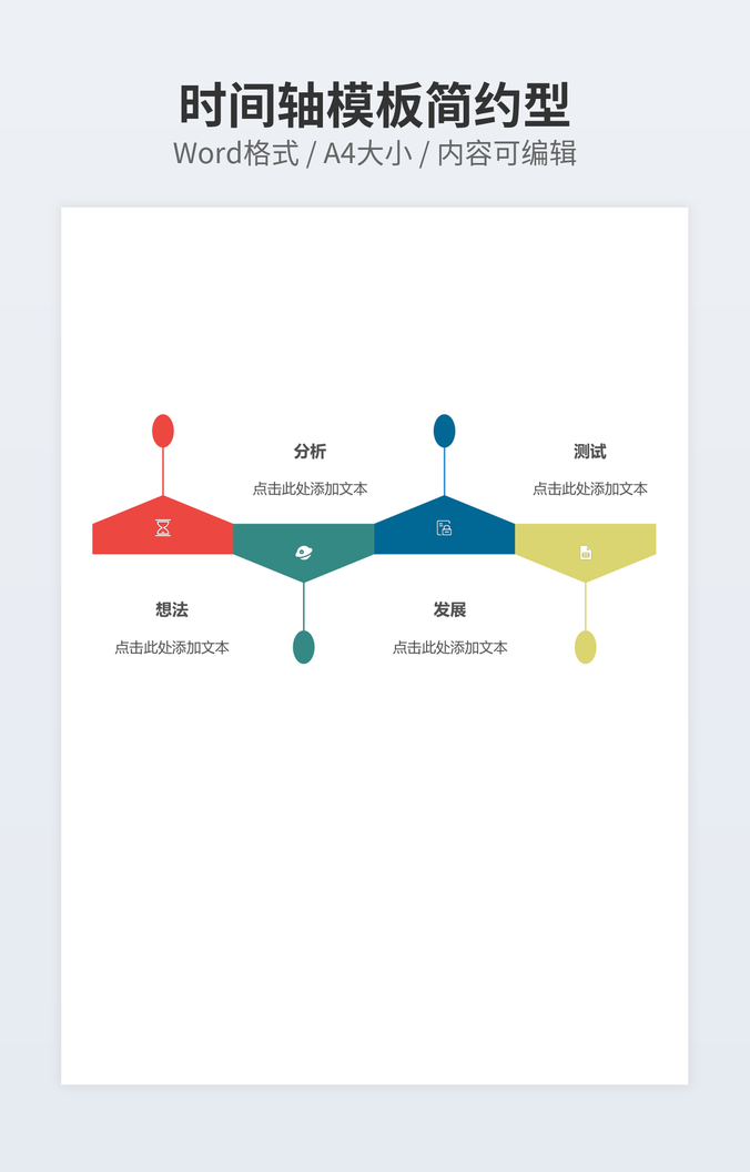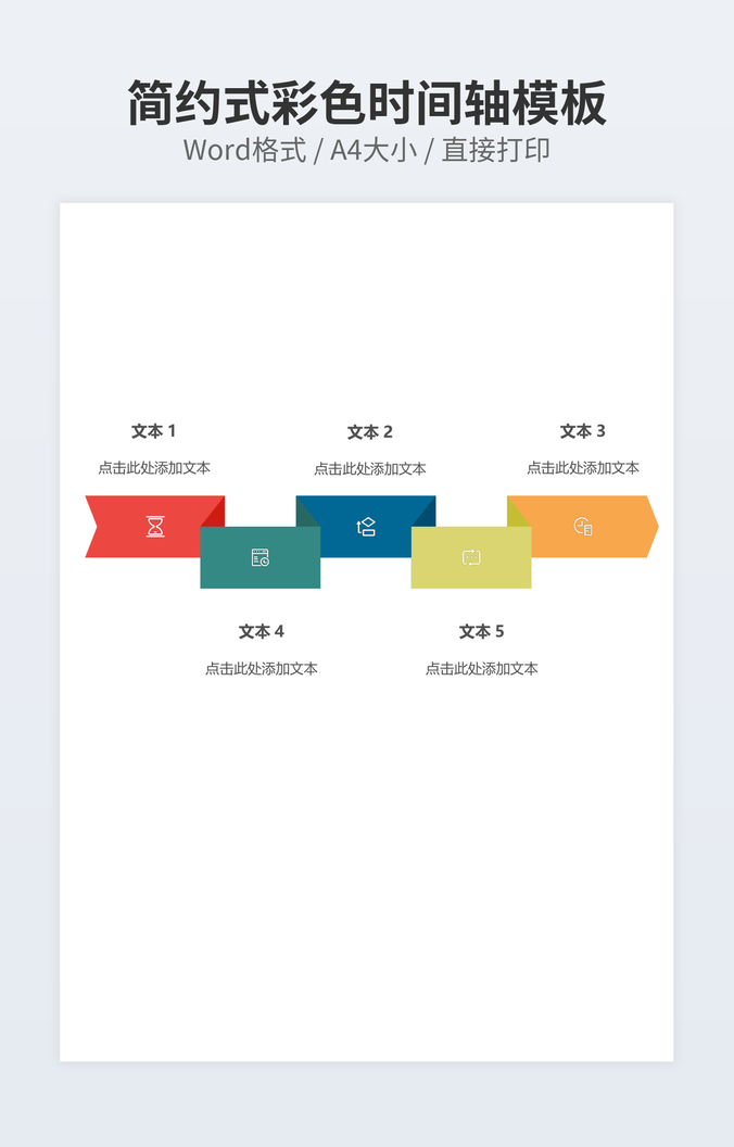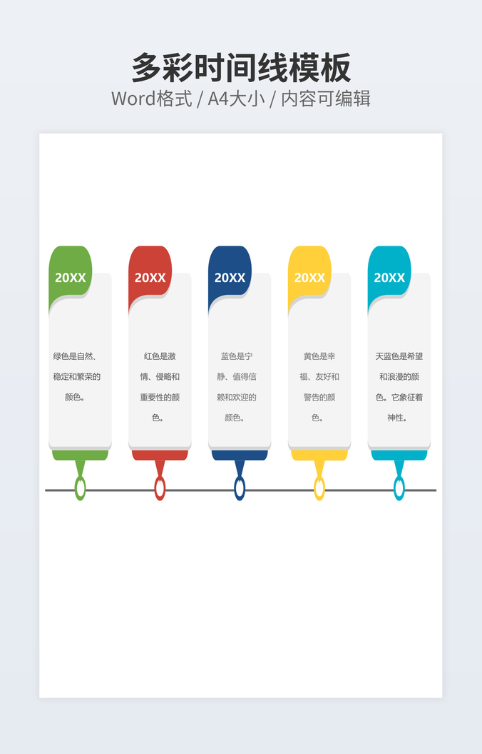 本作品内容为彩色时间轴模型下载,大小为38.77KB,作品为高清大图模板,格式为docx, 属于时间轴模板,作品模板源文件下载后可用编辑替换,模板中如有人物画像仅供参考禁止商用。小Q办公网-提供简历,PPT,Word,Excel优质模板素材下载模版平台,拥有海量的工作总结、竞聘求职、年终颁奖、计划书等。 通过小Q办公网下载时间轴模板源文件编辑修改源文件文字和图片即可使用。